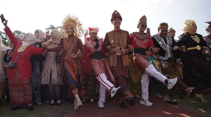 Deretan Kepala OPD juga terlihat mengenakan Ulos Batak, pakaian adat Minang dengan suntiang megah, hingga busana rumbai khas Papua.