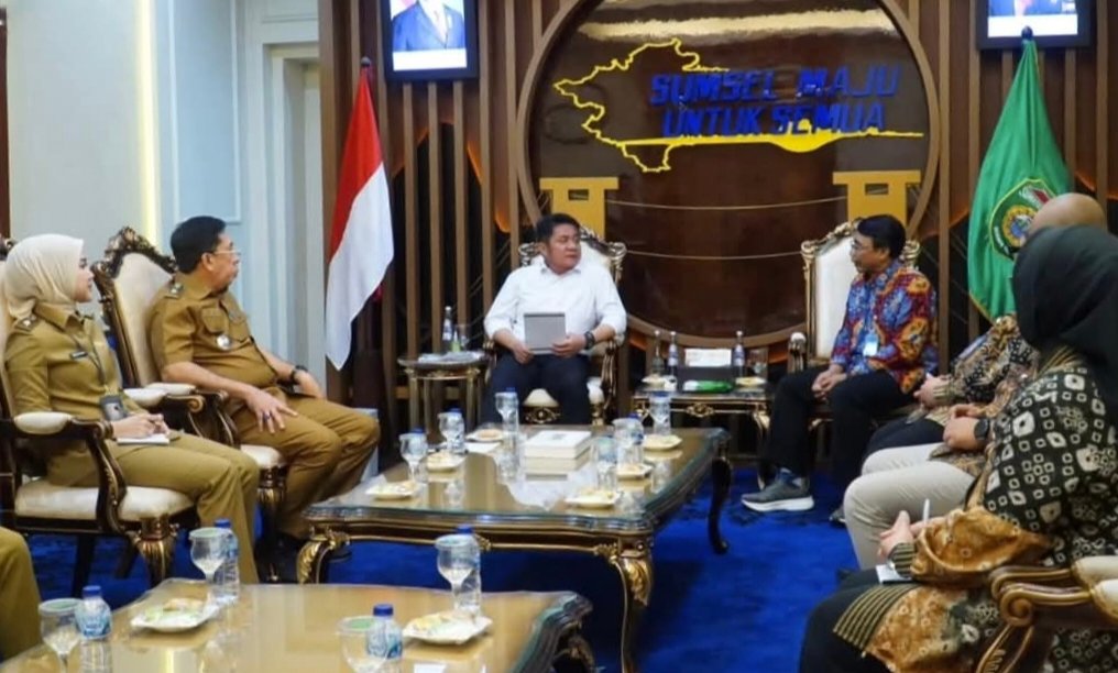 AmperaBlitz.com, Palembang — Gubernur Sumatera Selatan, H. Herman Deru, menerima kunjungan jajaran direksi PT Pupuk Sriwidjaja (Pusri) Palembang dalam pertemuan silaturahmi yang berlangsung di Ruang Tamu Gubernur, Senin (8/9/2025).