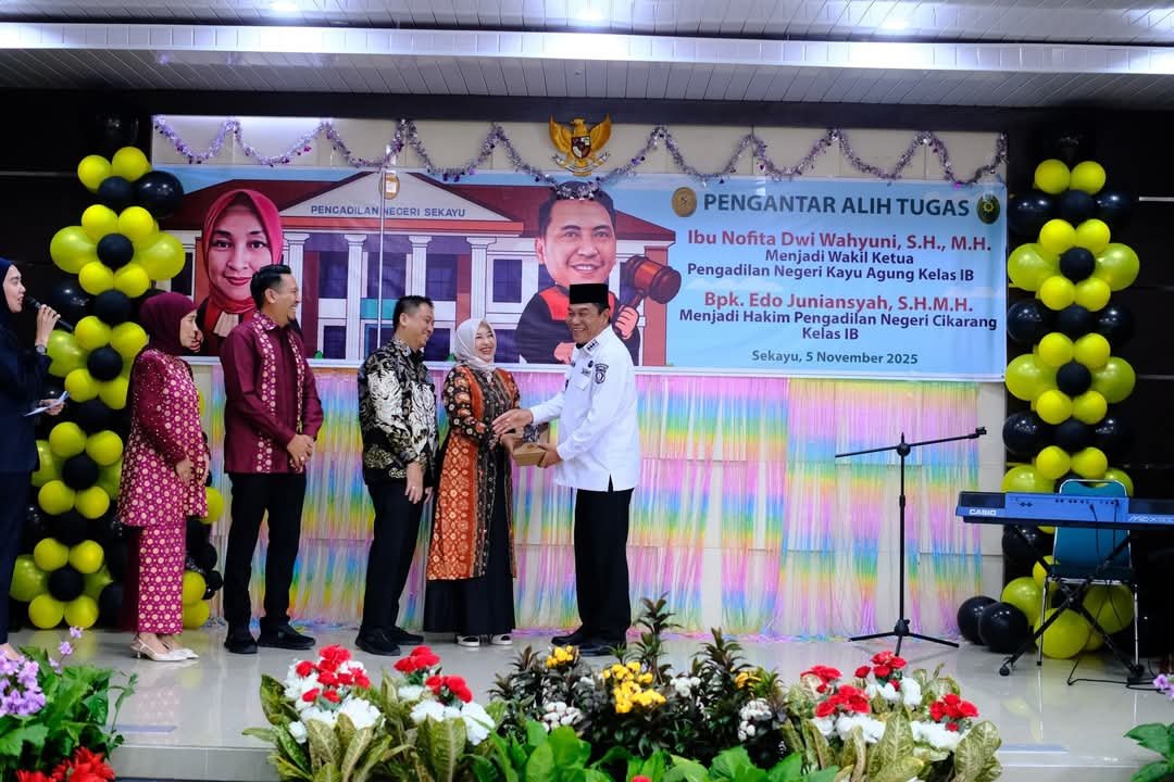 Kedua pejabat tersebut adalah Nofita Dwi Wahyuni, S.H., M.H., yang kini menjabat Wakil Ketua PN Kayuagung, dan Edo Juniansyah, S.H., M.H., yang akan bertugas sebagai Hakim PN Cikarang. Acara berlangsung di Kantor PN Kelas IB Sekayu.