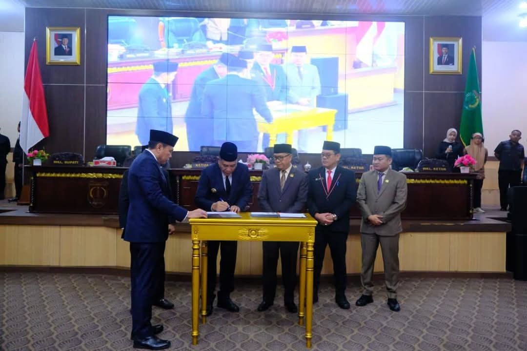 Kesepakatan bersama ini ditandatangani dalam Rapat Paripurna Masa Persidangan I Rapat ke-23 DPRD Muba di Ruang Rapat Paripurna DPRD Muba, Kamis (13/11/2025).