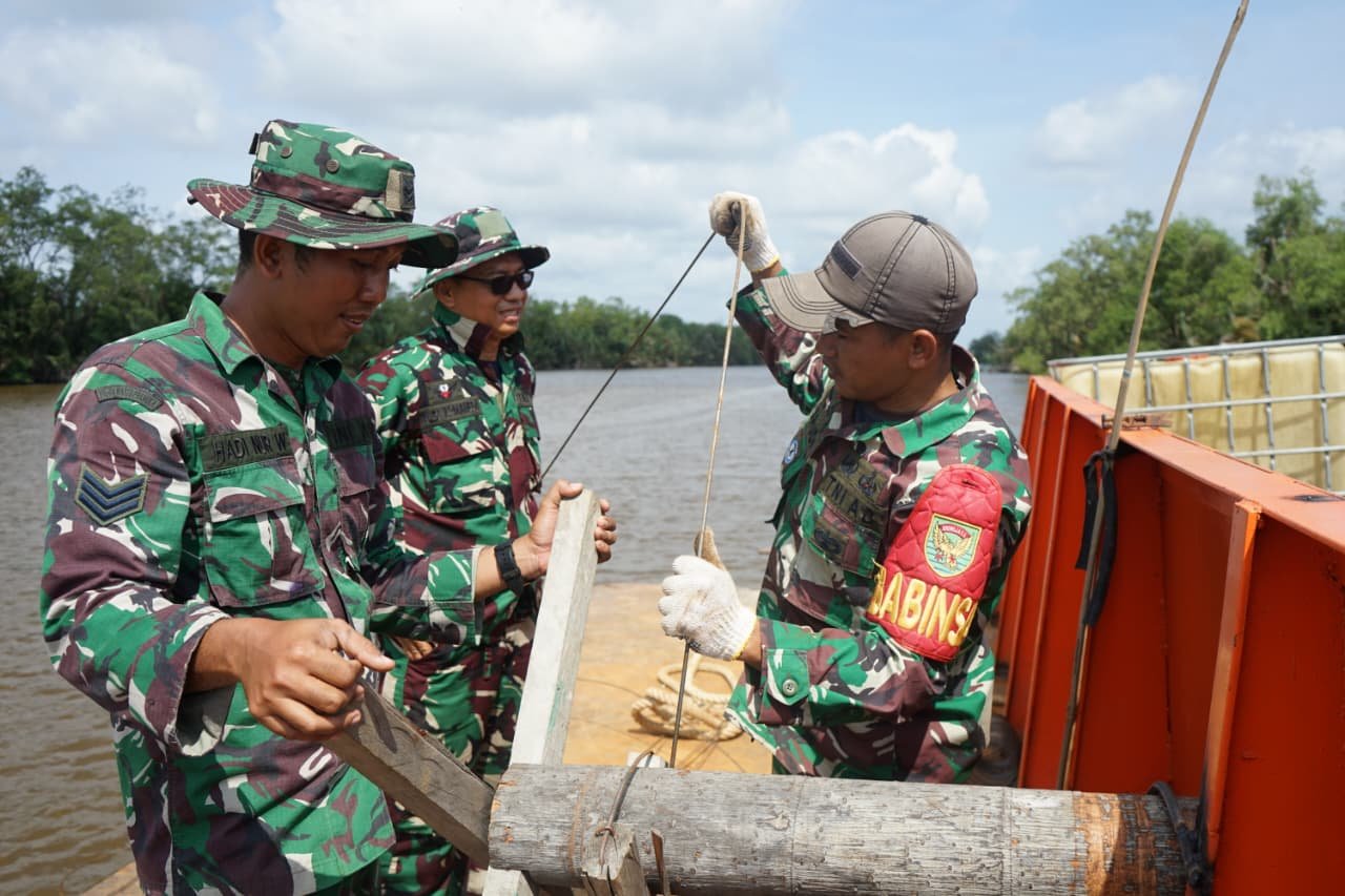 Pantauan para prajurit TNI tampak teliti mengerjakan pembuatan spiral dan pensil tiang pancang. Meski mengandalkan semangat gotong royong pengerjaan mengedepankan standar teknis tinggi karena komponen inti yang menentukan kekokohan jembatan dalam menahan beban di masa depan.